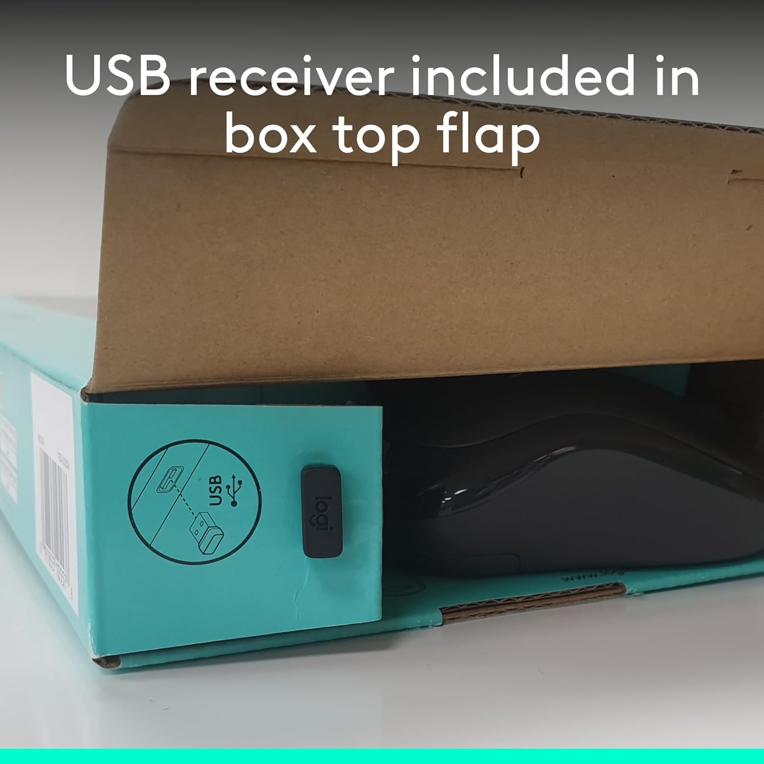 The USB receiver is conveniently located in the box, top flap. Compatibility- Windows, Chrome OS