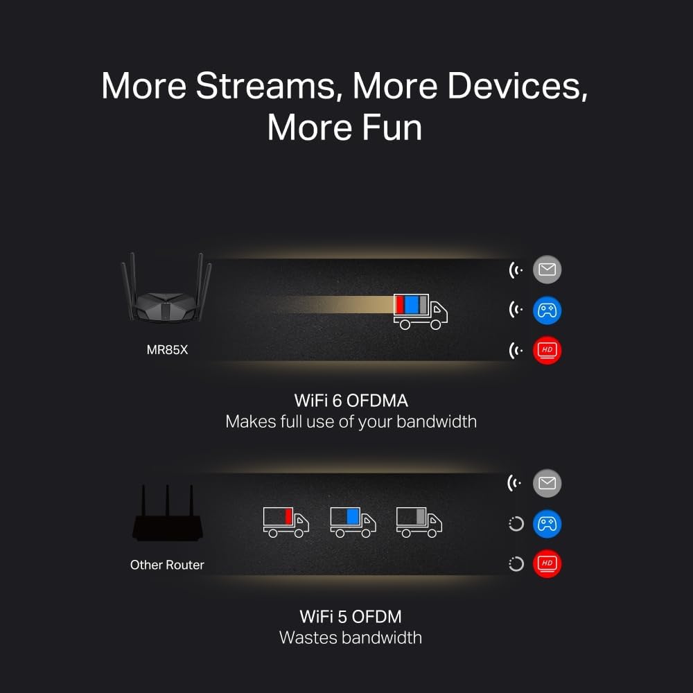 MORE DEVICES, MORE FUN – Supports MU-MIMO and OFDMA to reduce congestion and quadruple the average throughput.