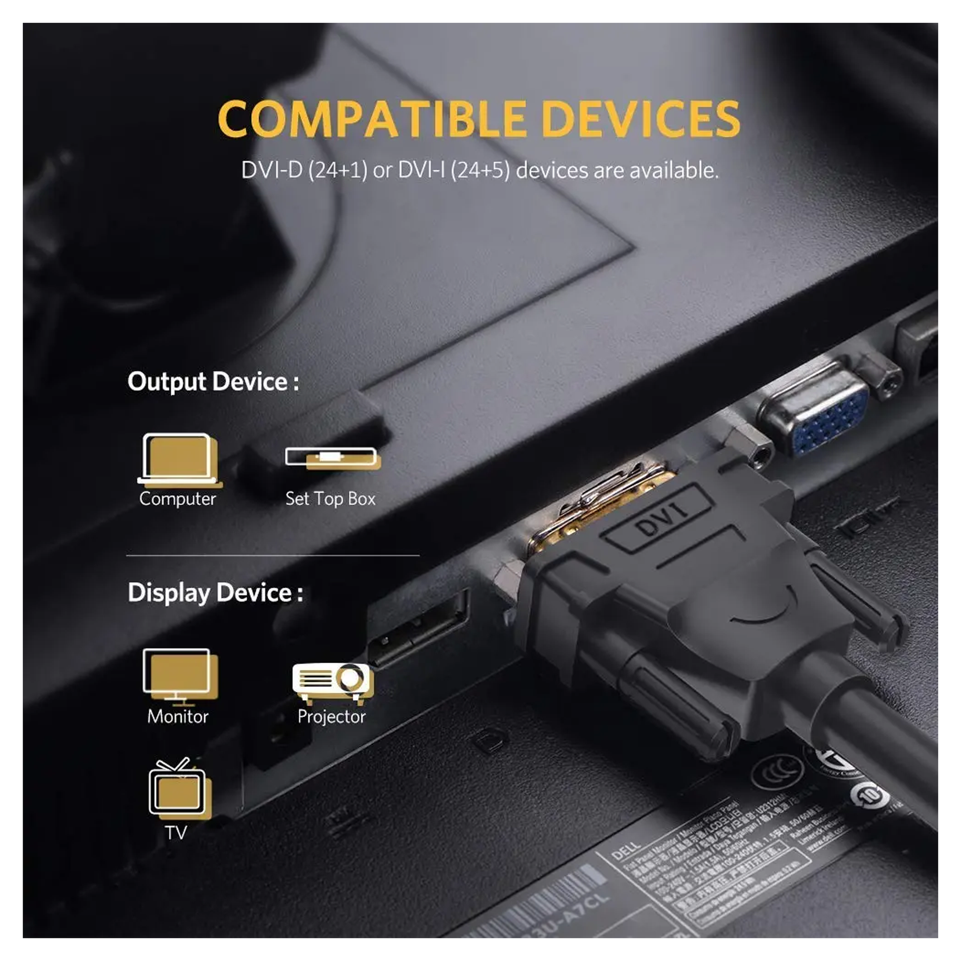 UGREEN DVI-D Male to Male Digital Video Cable offers you a convenient way to connect your DVI-equipped computer or other source devices to flat panel displays, digital CRT displays, projectors, and HDTV with a DVI-D interface for video, gaming, conference or home theatre.