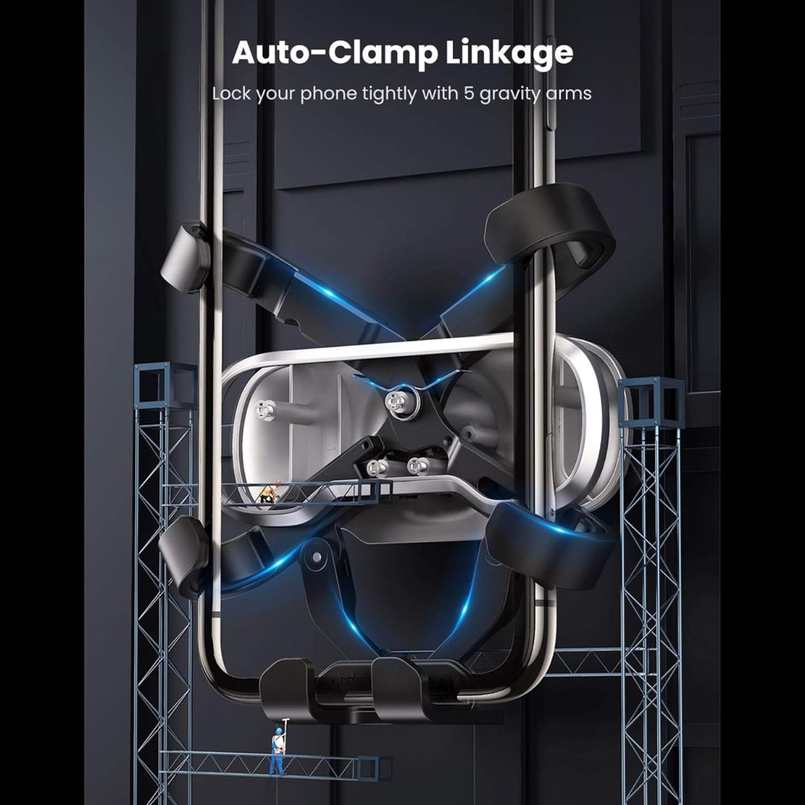 The Auto-Clamp Mobile Phone Vent Clip Holder automatically locks the phone via its gravity. Once your phone slides into the Gravity Phone Holder, 5 clip arms will form double triangle structures to securely grip it. The prong design makes it easy to install this Retractable Car Phone Holder onto the air vent. Tool-Free and one-hand operation.
