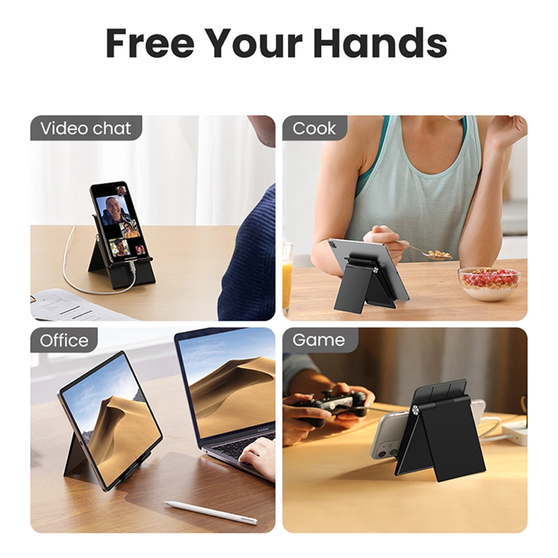 UGREEN desk phone holder stand holds your smartphone or even mini tablet at a comfortable angle, ideal for watching video, reading, video recording, browsing the web, playing games or facetime call.