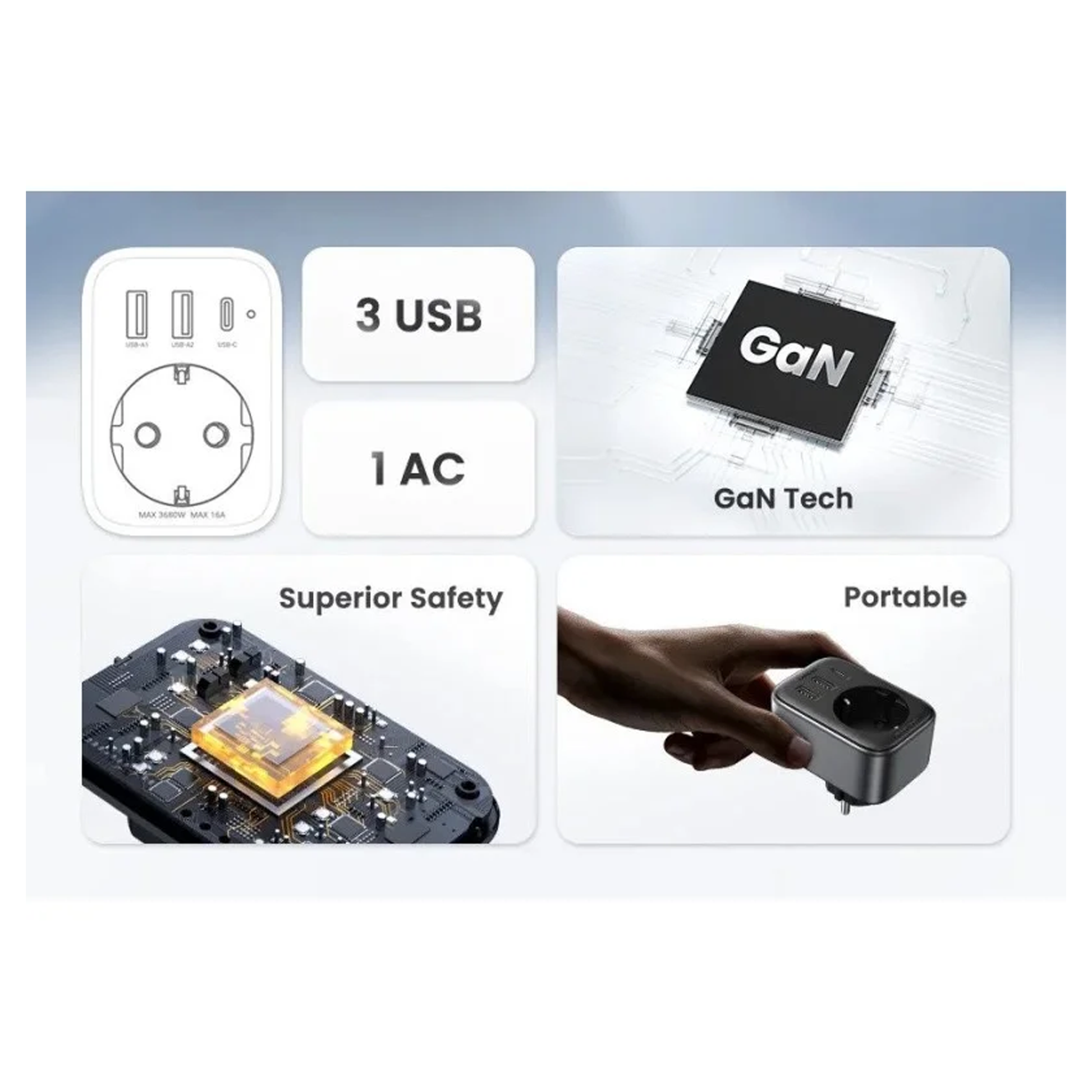 عظمة كهرباء يوجرين مخرج كهرباء و 3 منافذ شحن بقوة 30 واط مدخل اروبي / 90613