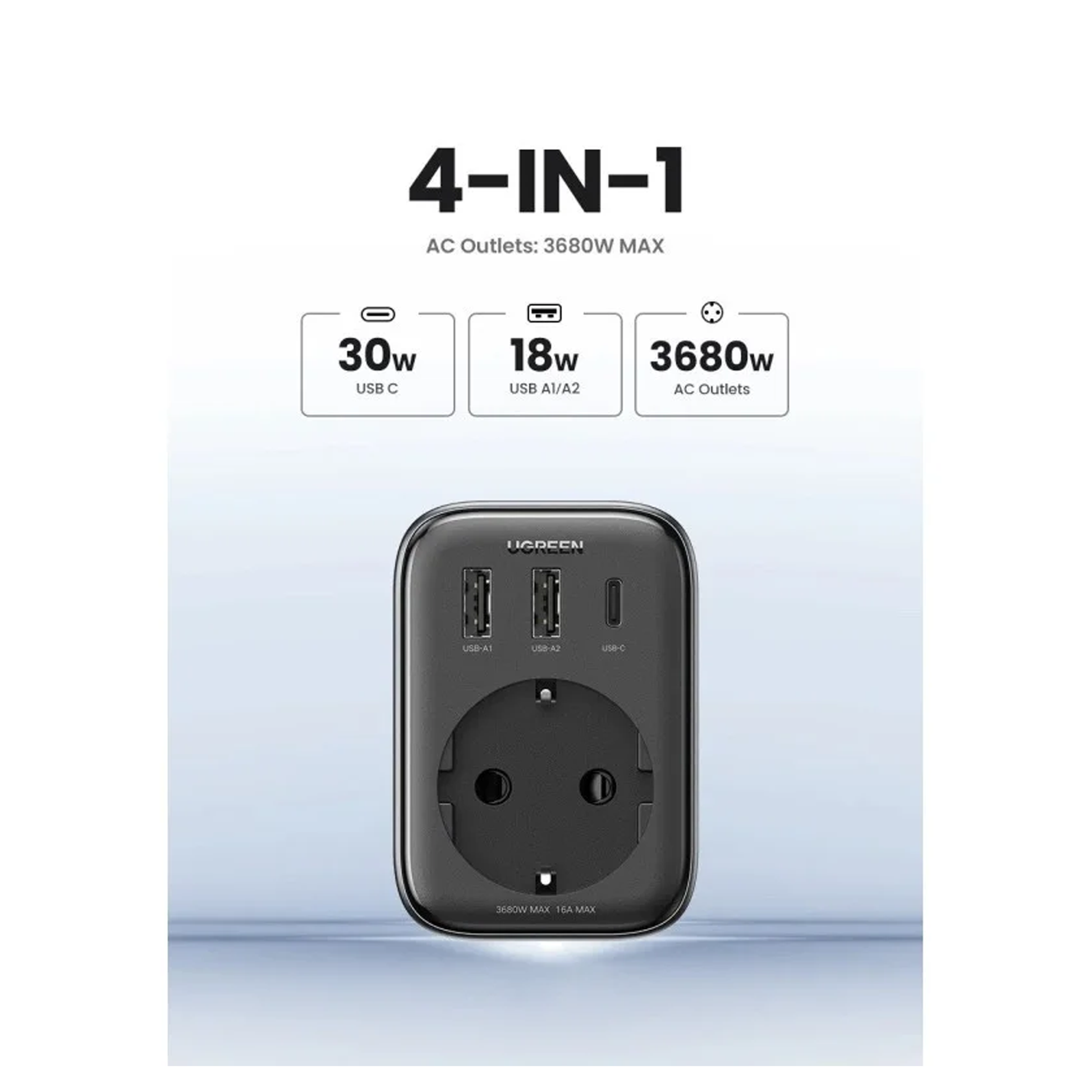 - محول شحن سريع 4 في 1: يجمع مقبس UGREEN PD 30W USB C بين منفذ تيار متردد واحد ومنفذي USB-A ومنفذ USB-C للشحن السريع، مما يضمن أن كل شيء يبدو سلسًا وسهلاً في المنزل عند الشحن السريع. يدعم منفذ USB-C الفردي طاقة شحن تصل إلى 30 وات لأجهزة MacBook Air وiPad وiPhone 14 Pro Max، ويدعم منفذا USB المزدوجان ما يصل إلى 18 وات. الطاقة المقدرة: 3680 وات كحد أقصى.