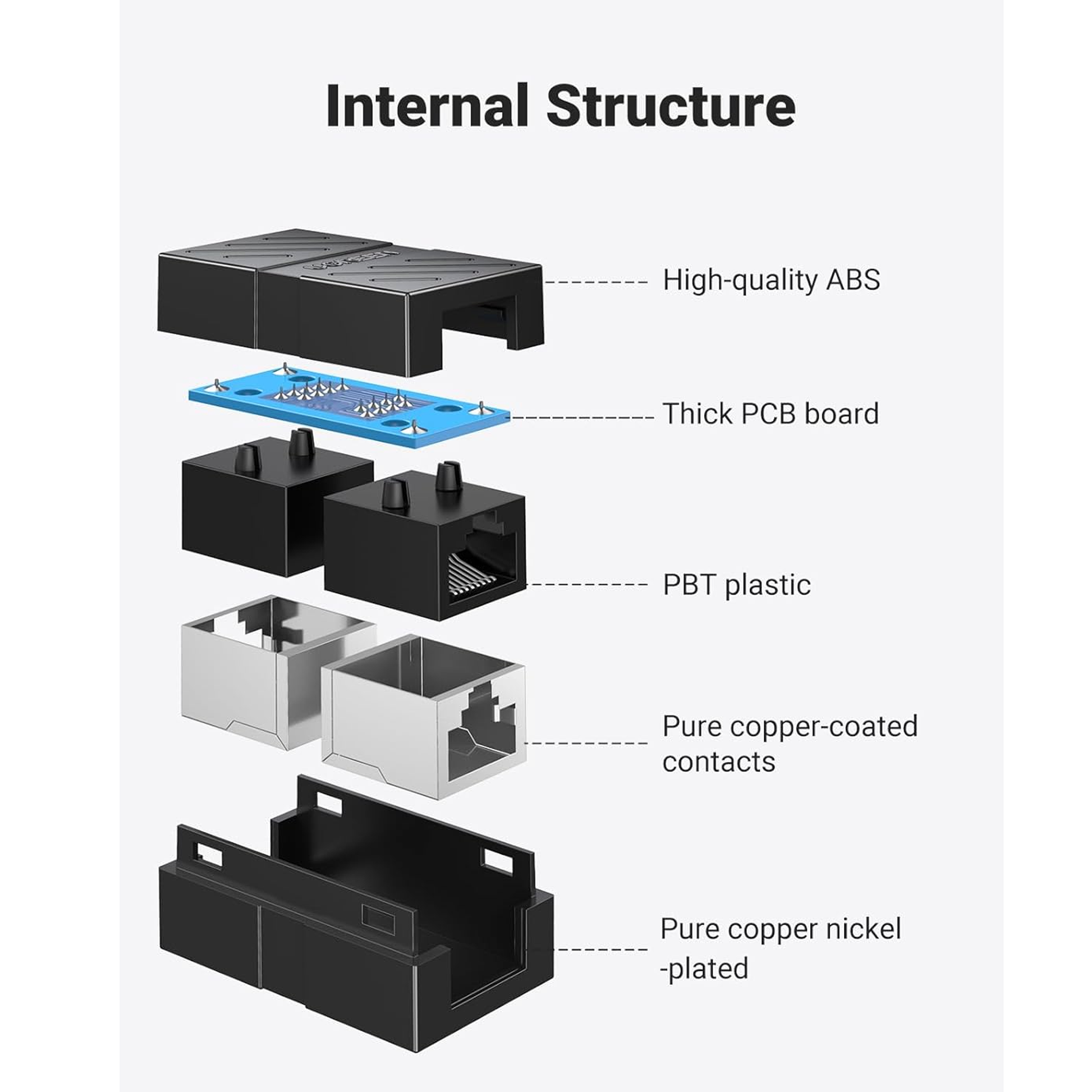 High Performance: This UGREEN RJ45 coupler meets Category 6 performance in compliance with the TIA/EIA 568-C.2 standard. It is RoHS compliant